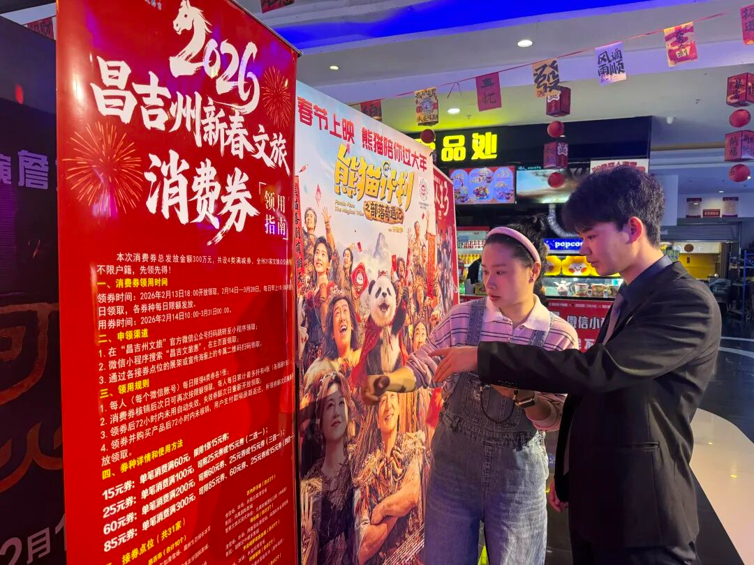 据悉,今年昌吉市各影院马年春节档共有6部新片上映,涵盖喜剧、动作、悬疑、动画、科幻等多元题材,精准覆盖不同群体。昌吉州发放的300万元新春文旅消费券可用于观影、出游、餐饮等多个场景,有效带动消费增长,让电影消费成为新春文旅消费的重要增长点,推动昌吉市文旅消费市场持续向好。