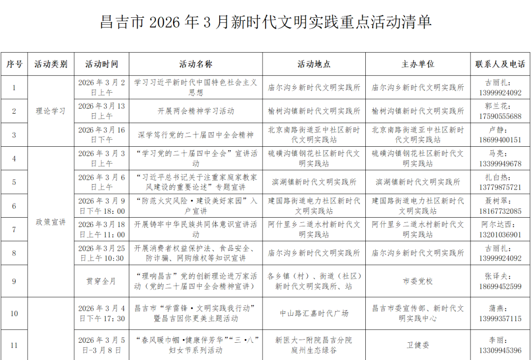 昌吉市2026年3月,新时代文明实践活动计划新鲜出炉,一起来看看吧!