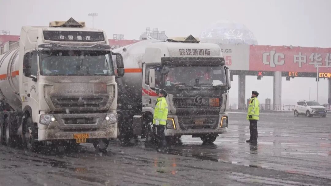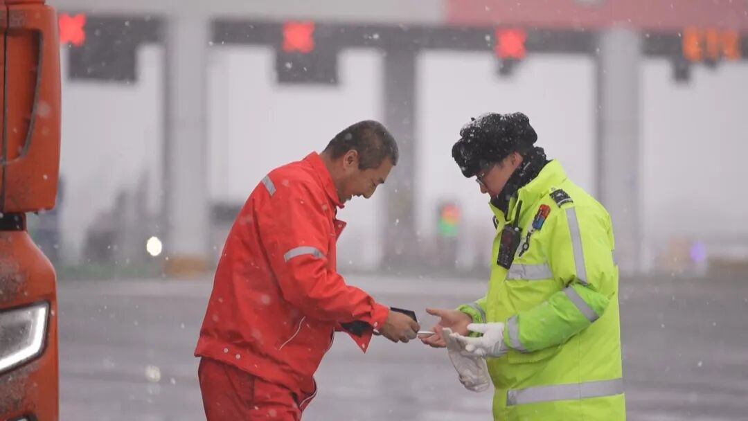货车驾驶员姜海明说:“今天雨夹雪下得比较大,路面也很滑,我们会服从交警指挥,放慢车速,确保安全通行。”