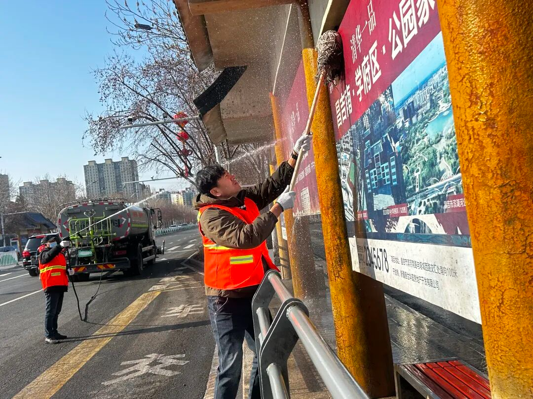 此外,“城市清洁工”也分组行动,对公交站台、灯杆等沿途基础公共设施进行擦洗,清除灰尘、污渍以及顽固小广告;对背街小巷、街角路口等容易被忽视的区域进行彻底清理,全力实现“路面净、设施净、环境净”。