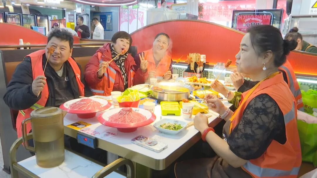 环卫工人马兵领到了手套、棉帽等慰问品,还享用了一顿丰盛的午餐。他感慨地说:“这顿火锅不仅暖了身子,更暖了我们的心。今后我们一定把昌吉的街道打扫得更干净,让大家生活得更舒心。”