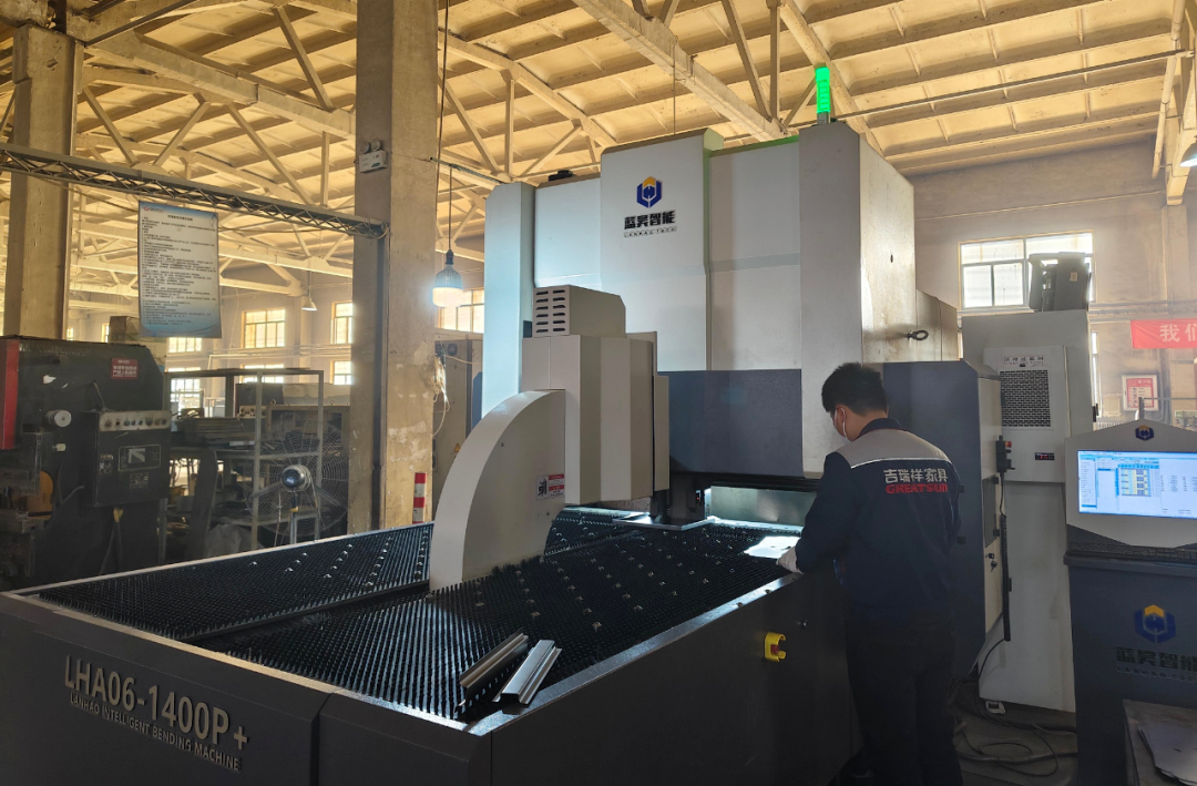 在新疆瑞祥智能制造股份有限公司生产车间,激光加工设备与机器人焊接设备正全力运转,切割、焊接来自全疆各地的旅游装备订单。这些装备主要包括旅居三角木屋和旅居太空舱。为加快交付进度,公司正组织人员加紧生产。
