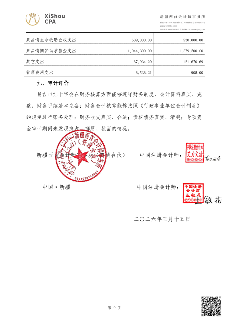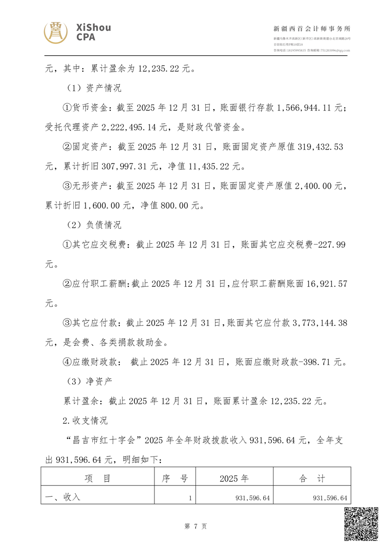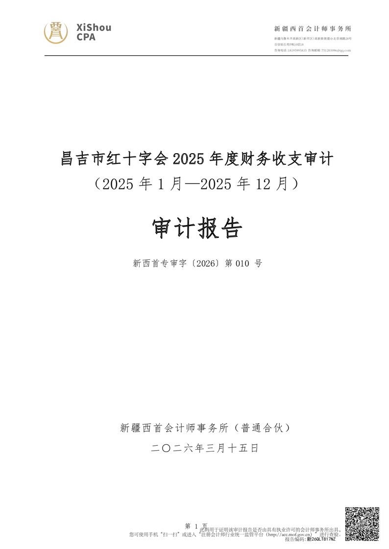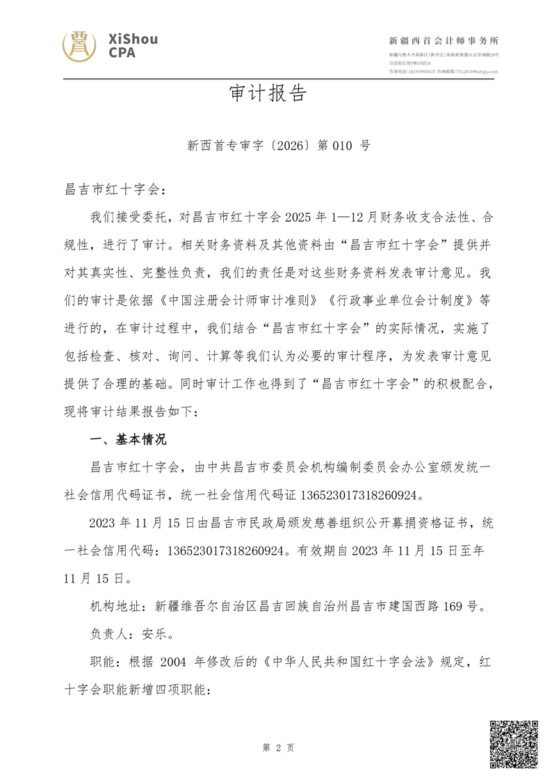昌吉市红十字会2025年度财务收支审计(2025年1月-2025年12月)审计报告